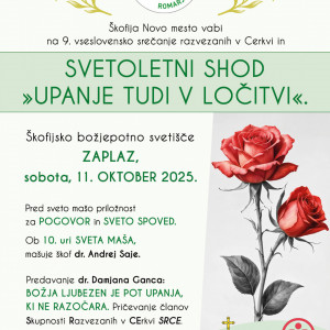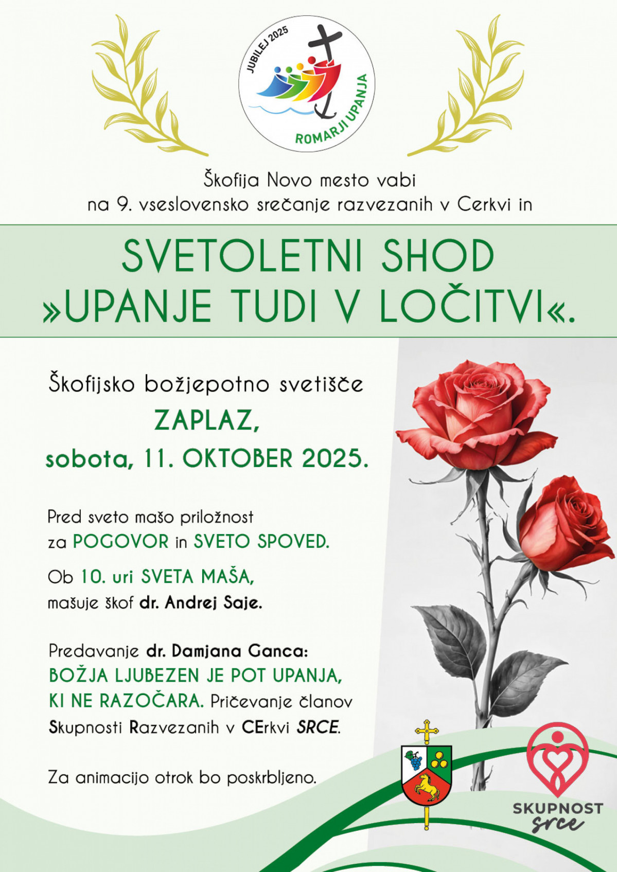 Škofija Novo mesto vabi na svetoletni shod razvezanih z naslovom "Upanje tudi v ločitvi" na Zaplazu, ki bo potekal v soboto, 11. 10. 2025, z začetkom ob 10.00.