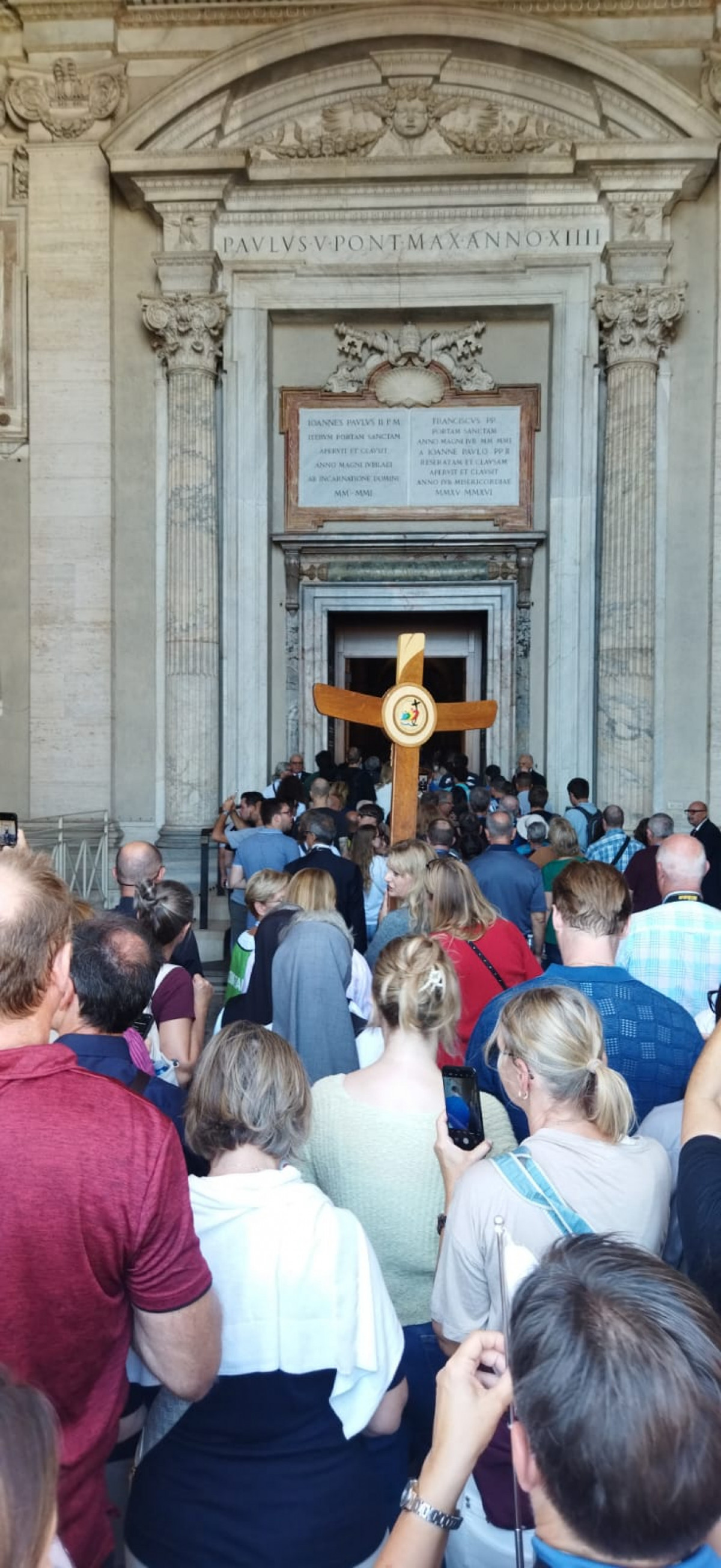 Pred trgom svetega Petra smo sprejeli romarski križ s simbolom romarjev upanja in skupaj poromali od Angelskega gradu do bazilike svetega Petra v skupni zbrani molitvi litanij vseh svetnikov, pesmi in tihem premišljevanju Božje besede. Ves preostali čas je bila tudi priložnost za tiho molitev in medsebojno druženje. Medtem smo se nekateri povzpeli na kupolo bazilike, kjer so se nam ponudili prekrasni pogledi. Ogledali smo si tudi grobnice papežev.