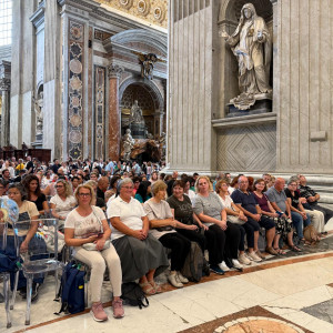 Od 25. do 28. septembra 2025 smo katehistinje, katehisti in sodelavci Slovenskega katehetskega urada poromali v Rim in Vatikan. Obiskali smo vse štiri patriarhalne oz. papeške bazilike in vsak dan posebej stopili skozi ena izmed svetih vrat, ki simbolizirajo Kristusa in prehod v novo življenje.
