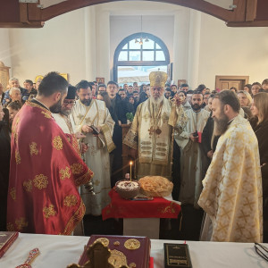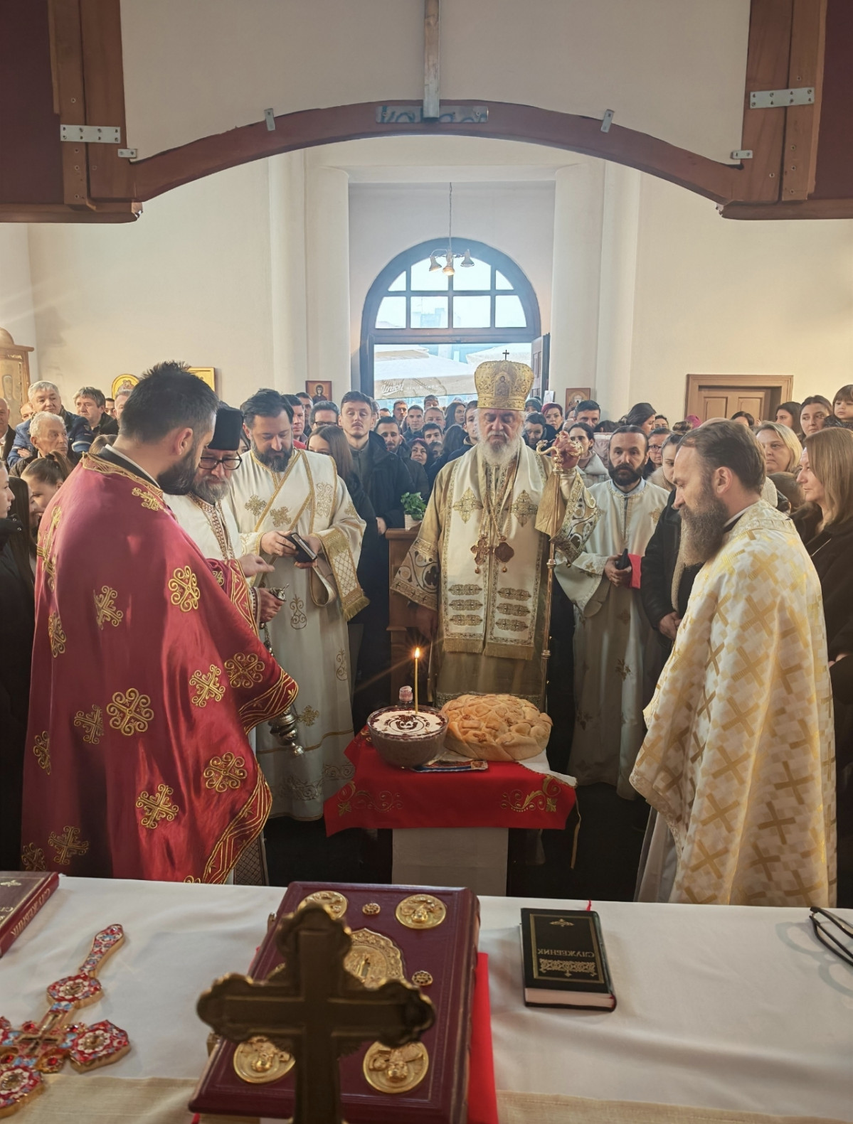 Pri obhajanju praznika župnijskega zavetnika (parohijske slave) sv. Save sta se visokim gostom in vernikom pridružila tudi stolni župnik in novomeški škof msgr. dr. Andrej Saje. Gospod škof je zbranim čestital ob prazniku in spomnil, da je poleg jezika in kulture ravno vera tista, ki krepi narodno identiteto. Vsem je zaželel dobro počutje in da bi se čimprej lahko zbirali k bogoslužju v novi cerkvi sv. Dimitrija.