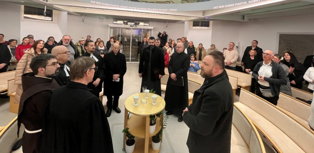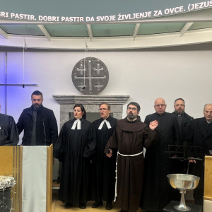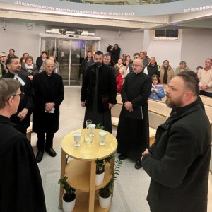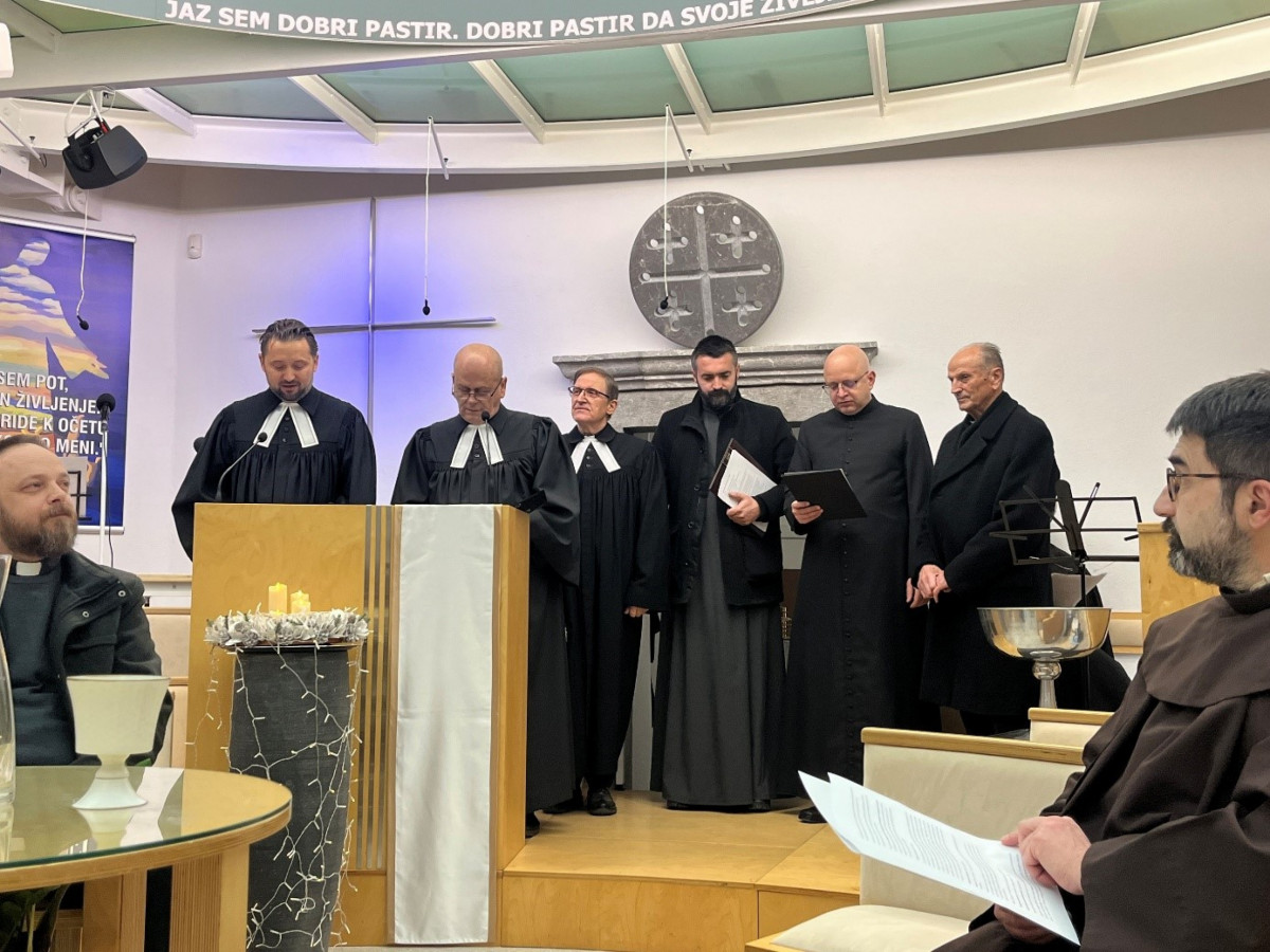 Hvala, da smo na tem ekumenskem večeru skupaj, kar je posebno pričevanje – ne kot gostje drug pri drugem, ampak kot bratje in sestre, ki stojimo pred istim Gospodom in poslušamo isto Besedo. V takih trenutkih človek začuti, kako dragoceno je, da se ne zapiramo, ampak delamo korake drug k drugemu. Ti koraki niso majhni: v vsakem se pogosto preizkusita naša vera in naša ponižnost, hkrati pa v vsakem koraku zažari nekaj zelo evangeljskega in zelo človeškega – želja, da bi bili resnično bratje in sestre.