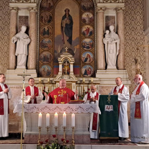 Kot romarji smo bili navzoči tudi vsi duhovniki navedenih župnij (Ciril Murn, Franc Vidmar, Alfons Žibert) ter nekdanji župnik v Šmarjeti gospod Andrej Golčnik in stolni župnik gospod Klavdio Peterca ter naš škof dr. Andrej Saje.
