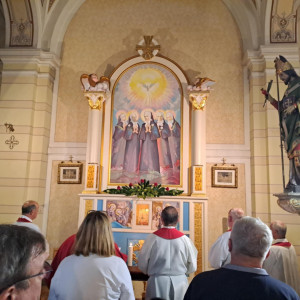 Spomnimo se, da sta med drinskimi mučenkami dve Slovenki, sestra Krizina Bojanc in sestra Antonija Fabjan. Skupaj s še tremi sestrami so bile sredi druge svetovne vojne, decembra leta 1941 žrtve četniškega terorja in so 15. decembra umrle mučeniške smrti. Romarji iz Slovenije smo zastopali vse župnije, s katerimi sta povezani naši blaženi: župnija Hinje, župnija Žužemberk in župnija Šmarjeta. Z nami so bili tudi romarji iz drugih župnij novomeške škofije.