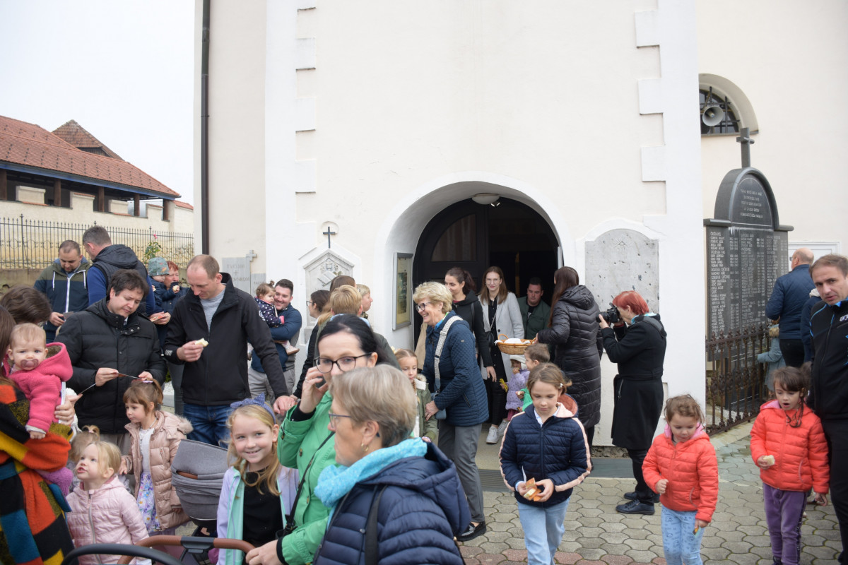 Po koncu svete maše smo se še se vsi skupaj zbrali in zadržali pred cerkvijo in se okrepčali s kruhom, ki so ga spekle mame otrok Petrovega vrtca. Bogu hvala za vse.